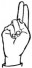 На ћирилици написано НЕНАД КЛЕМЕНОВИЋ састоји се из 15 слова [?]. Исписано ћириличном једноручном азбуком за глувонеме: